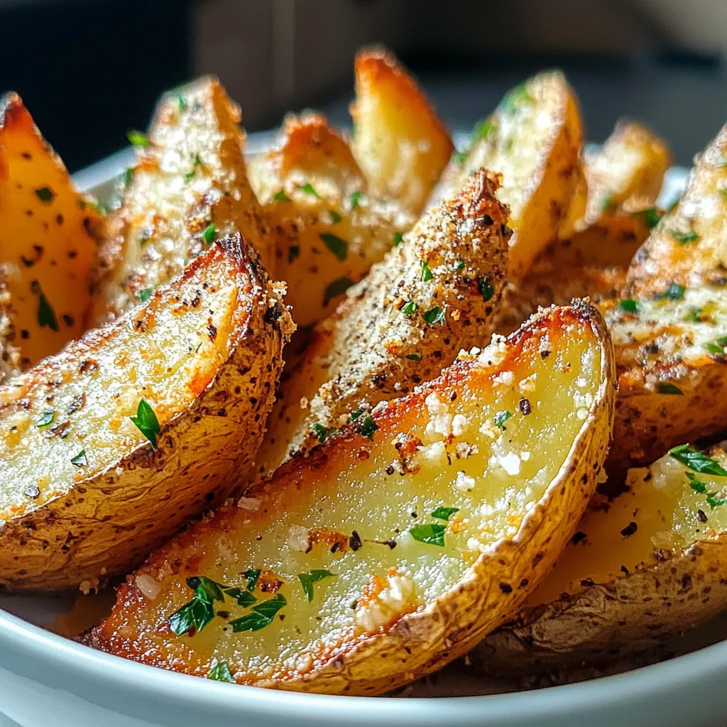 Savor irresistible Baked Garlic Parm Potato Wedges, a delicious side dish perfect for any meal. Easy recipe for crispy, cheesy goodness!