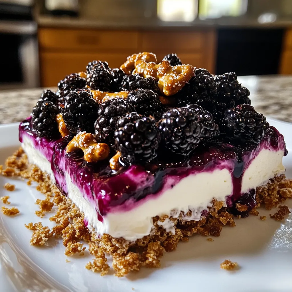 - For a little extra crunch, sprinkle crushed nuts (like walnuts or pecans) on top of the cream layer before pouring the blackberry mix.