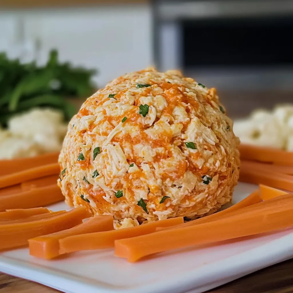Savory Buffalo Chicken Cheese Ball perfect for gatherings! Delight guests with this easy, tasty recipe for a crowd-pleasing dip. Enjoy every bite!