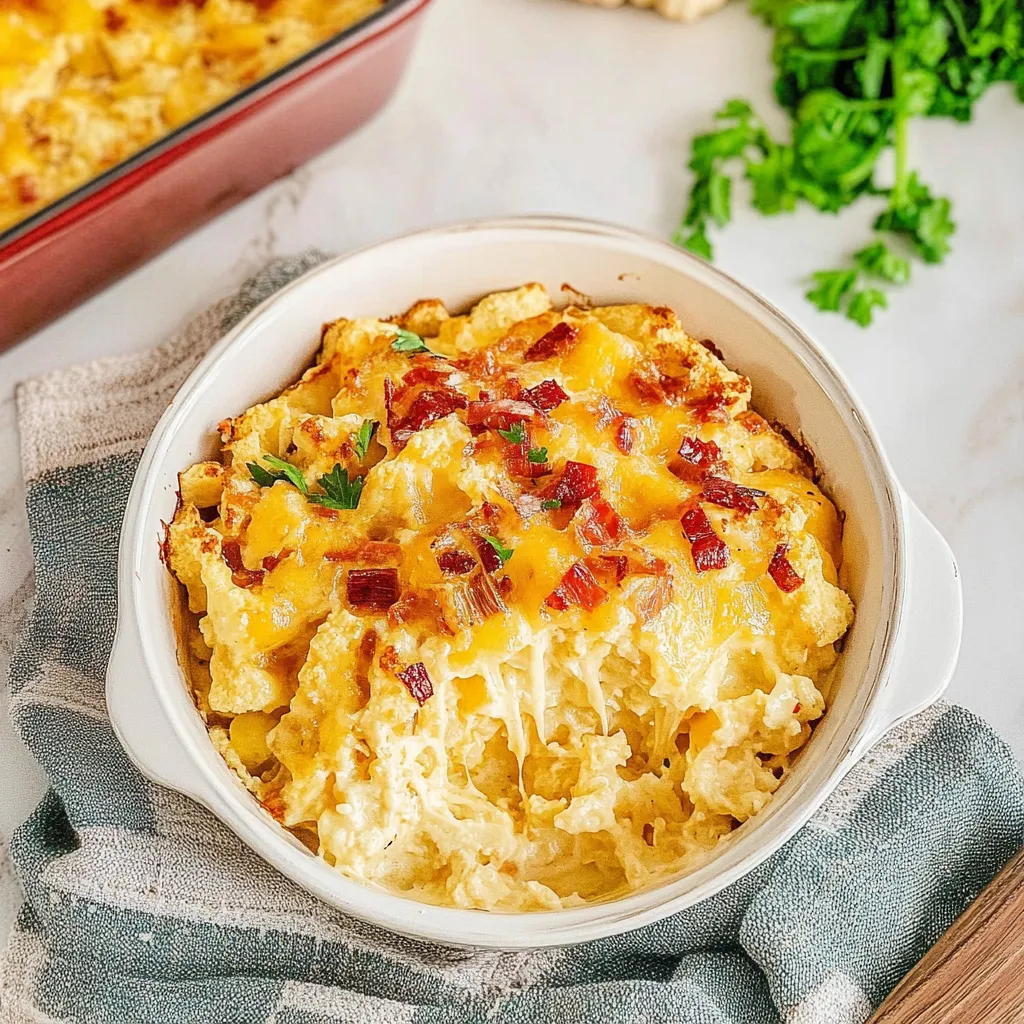 A delightful cauliflower casserole that combines indulgent and nutritious elements, perfect for health enthusiasts and flavor seekers alike.