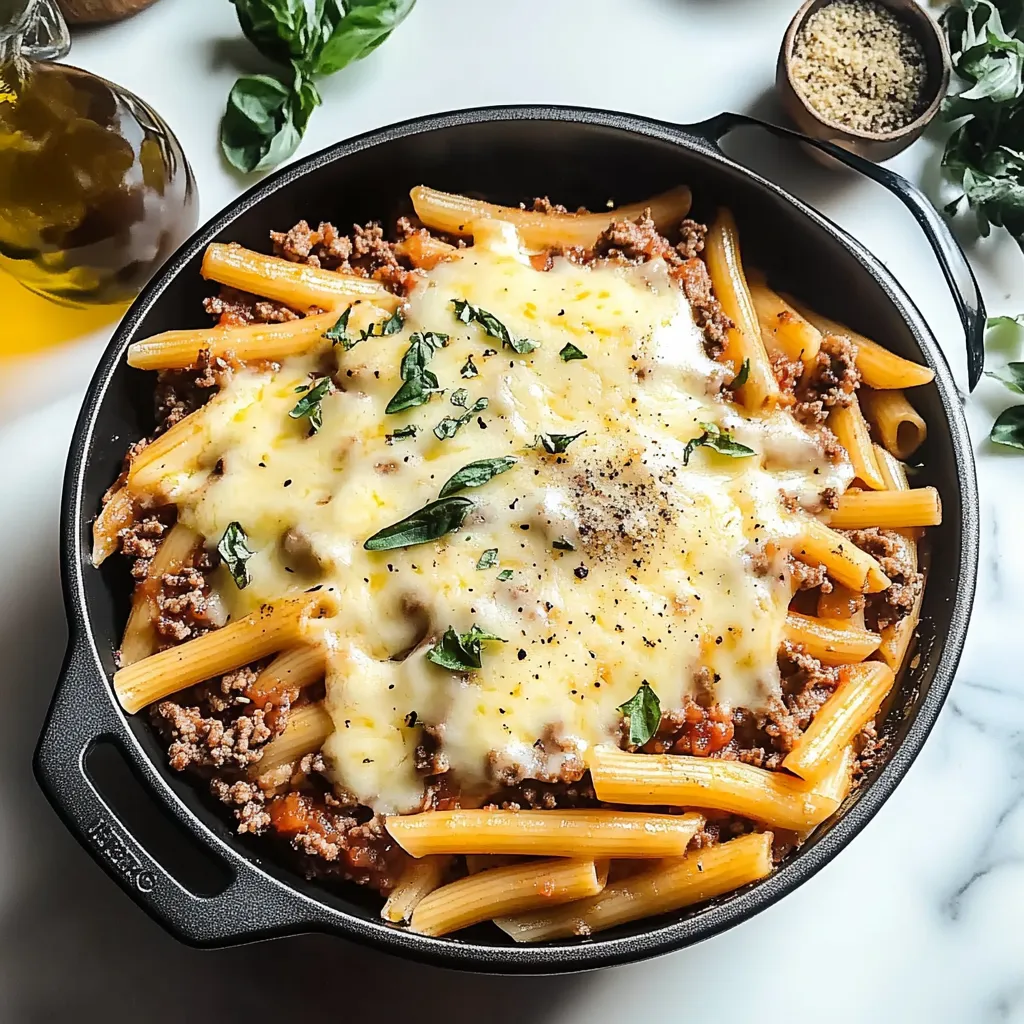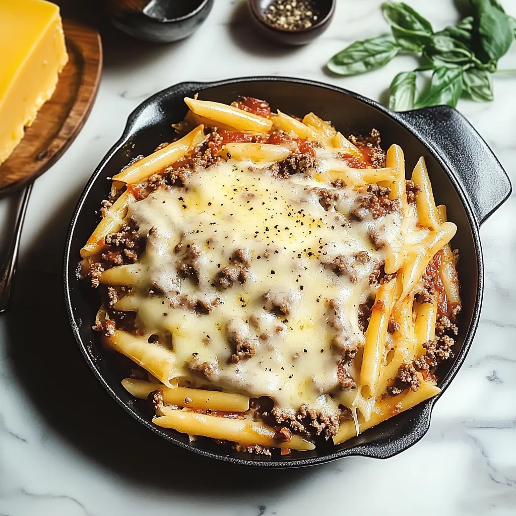 Keywords: Cheesy Penne, Ground Beef, Pasta Recipe, Quick Dinner, Comfort Food