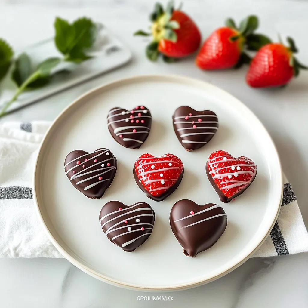 Now that you’ve crafted these heavenly treats, how do you serve them? For a cozy gathering, arrange the Chocolate-Covered Strawberry Hearts on a beautiful platter, dust them with powdered sugar, and perhaps add a few edible flowers for that gorgeous pop of color. Pair them with a cup of rich hot cocoa or a glass of bubbly champagne for a celebration! They also make a sweet, romantic dessert for two—perfect for a candlelit dinner at home.