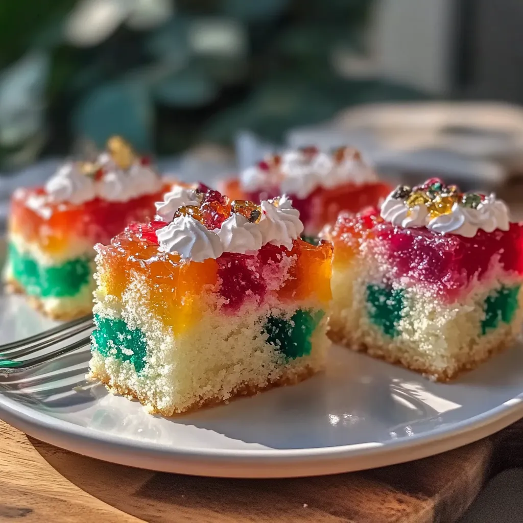 Keywords: Jello Poke Cake, Rainbow Cake, Dessert Recipe, Colorful Cake, Easy Cake Recipe