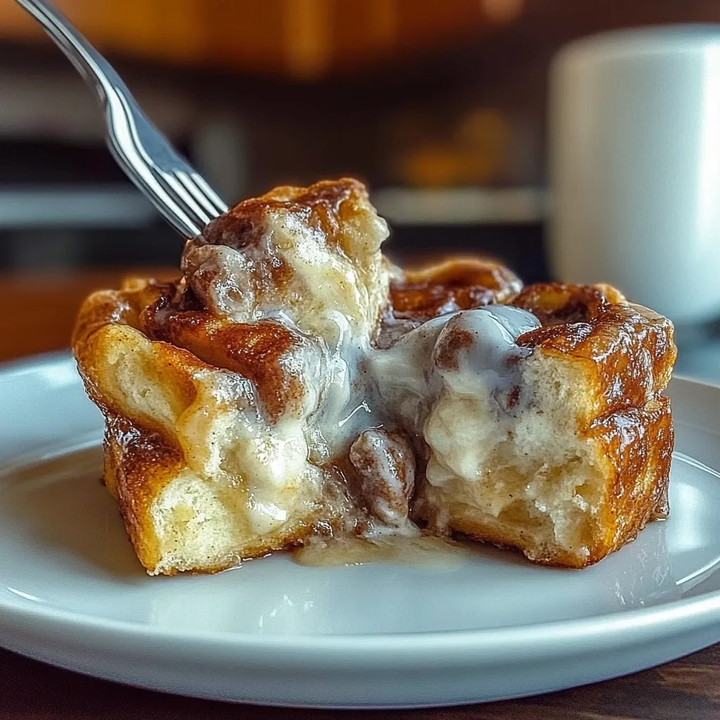 This delightful bake combines buttery cinnamon rolls with a luscious cream cheese swirl, all soaked in a rich French toast mixture.