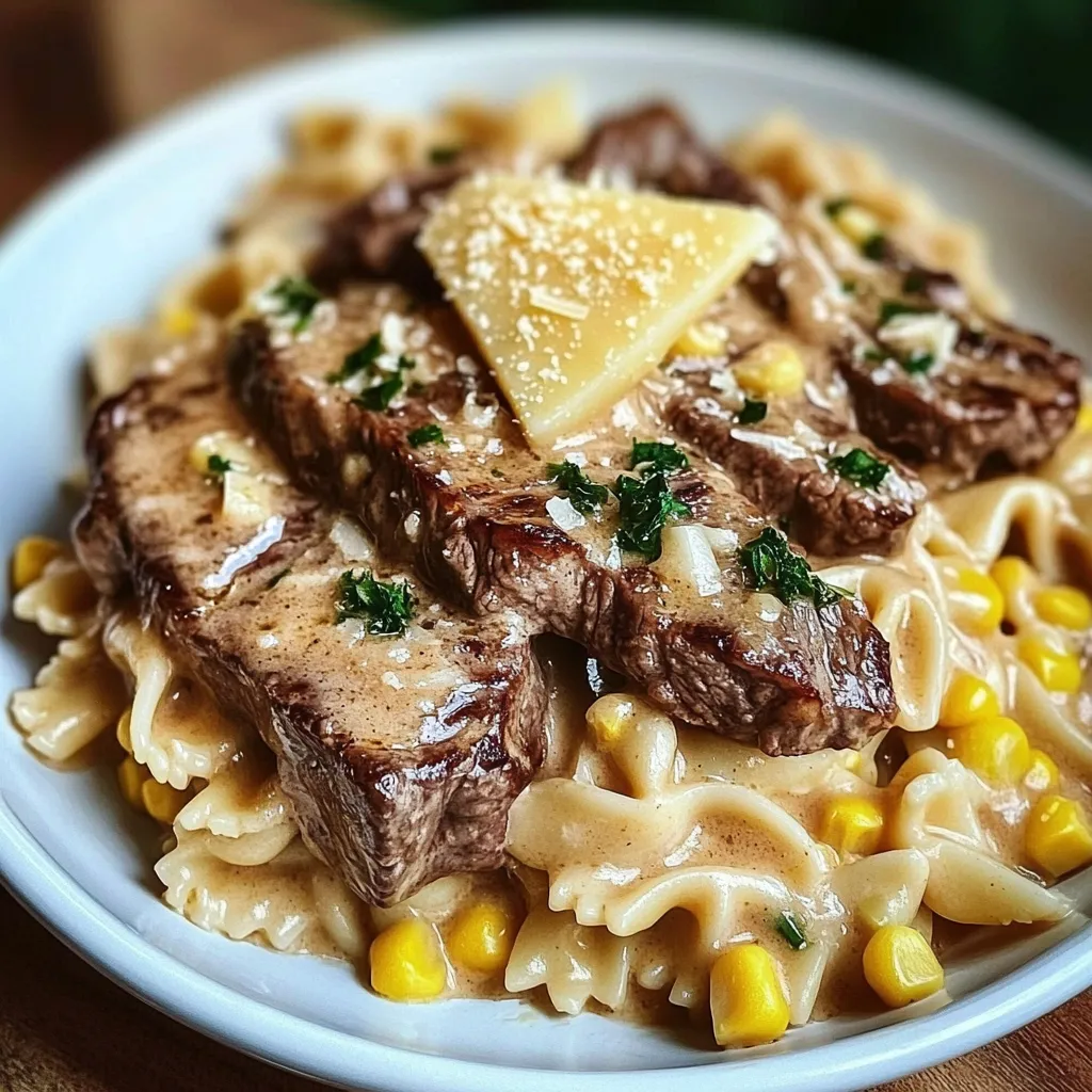 Creamy Parmesan Steak & Sweet Corn Bowtie Recipe