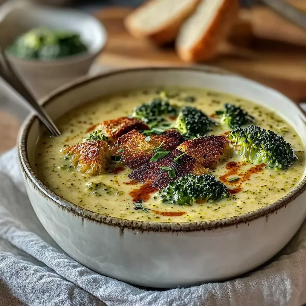 Ah, serving time—where all the magic happens! I love to serve this Creamy Smoked Gouda Broccoli Soup with a big slice of crusty artisan bread or some warm garlic bread on the side for dipping. Nothing beats that delightful texture contrast! You can also pair it with a simple mixed salad dressed with vinaigrette for a more filling meal. And of course, a cozy cup of herbal tea or latte makes the perfect companion. Picture yourself cuddled up on the couch with a blanket, a bowl of this heavenly soup, and maybe a good book or a movie—pure bliss!