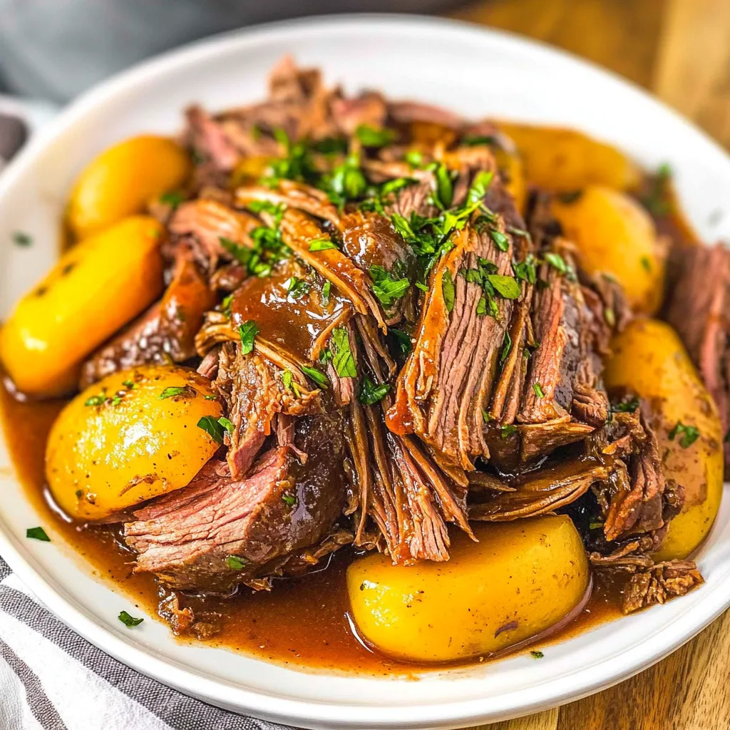 A melt-in-your-mouth tender crockpot roast beef recipe enhanced with a unique secret ingredient for rich flavors.