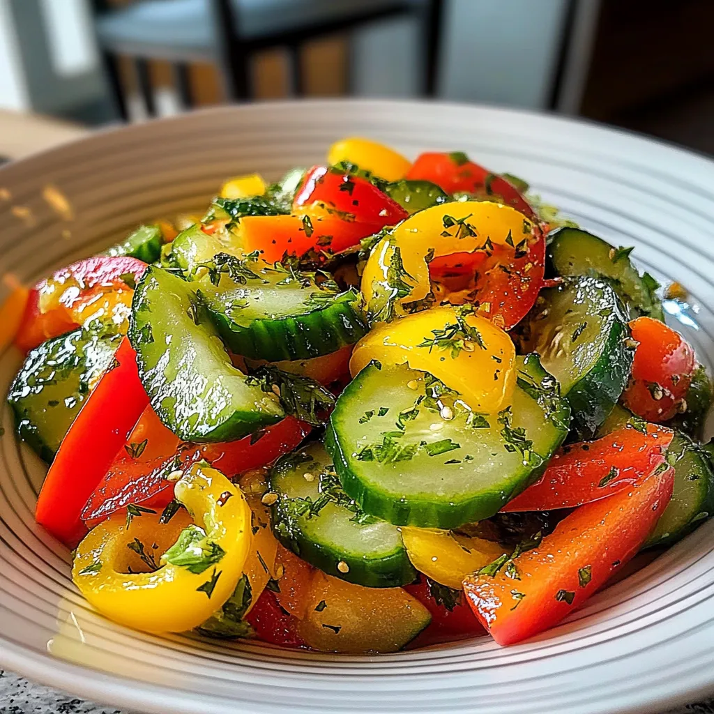 A refreshing and vibrant salad made with cucumbers and sweet bell peppers, perfect for summer meals.
