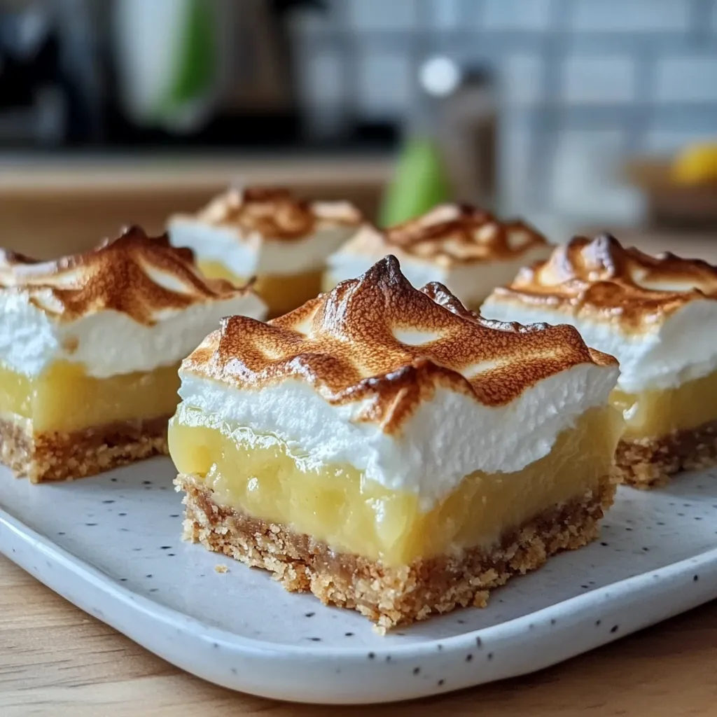 Discover this easy recipe for fluffy lemon meringue pie bars with a crunchy graham crust. Perfect dessert for any occasion! (149 chars)