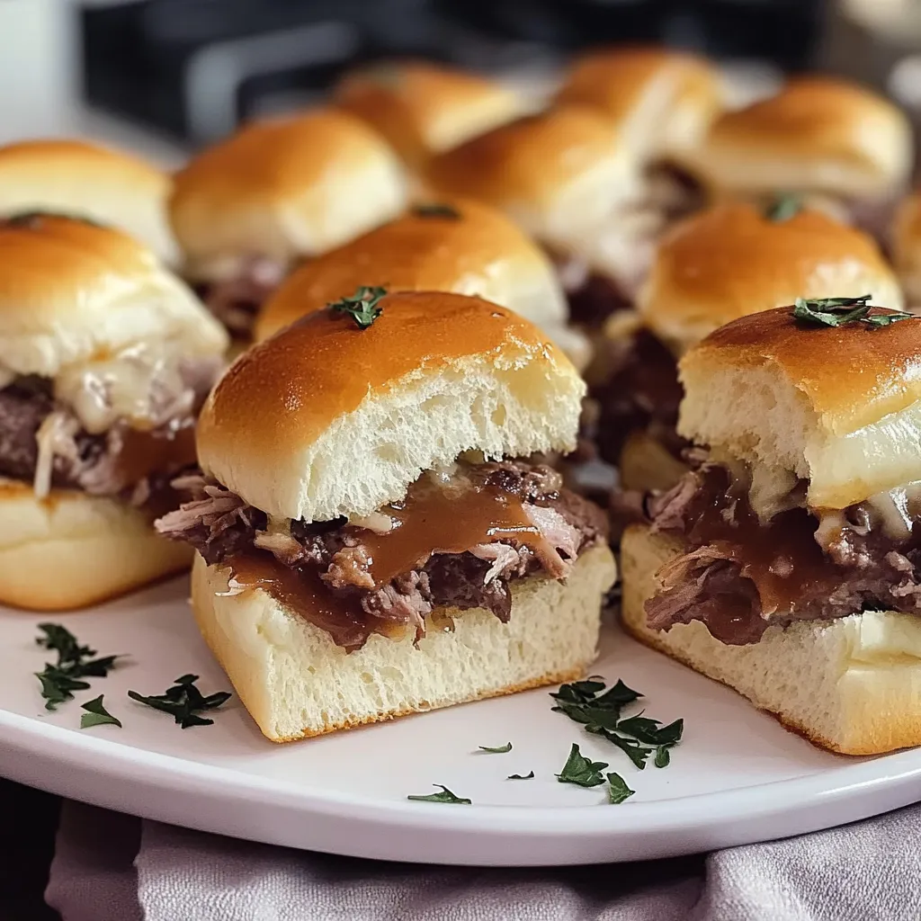 Serve these sliders piping hot with that savory au jus and watch them disappear! Pro tip: If you like a little extra touch, garnish with chopped fresh herbs like parsley before serving.
