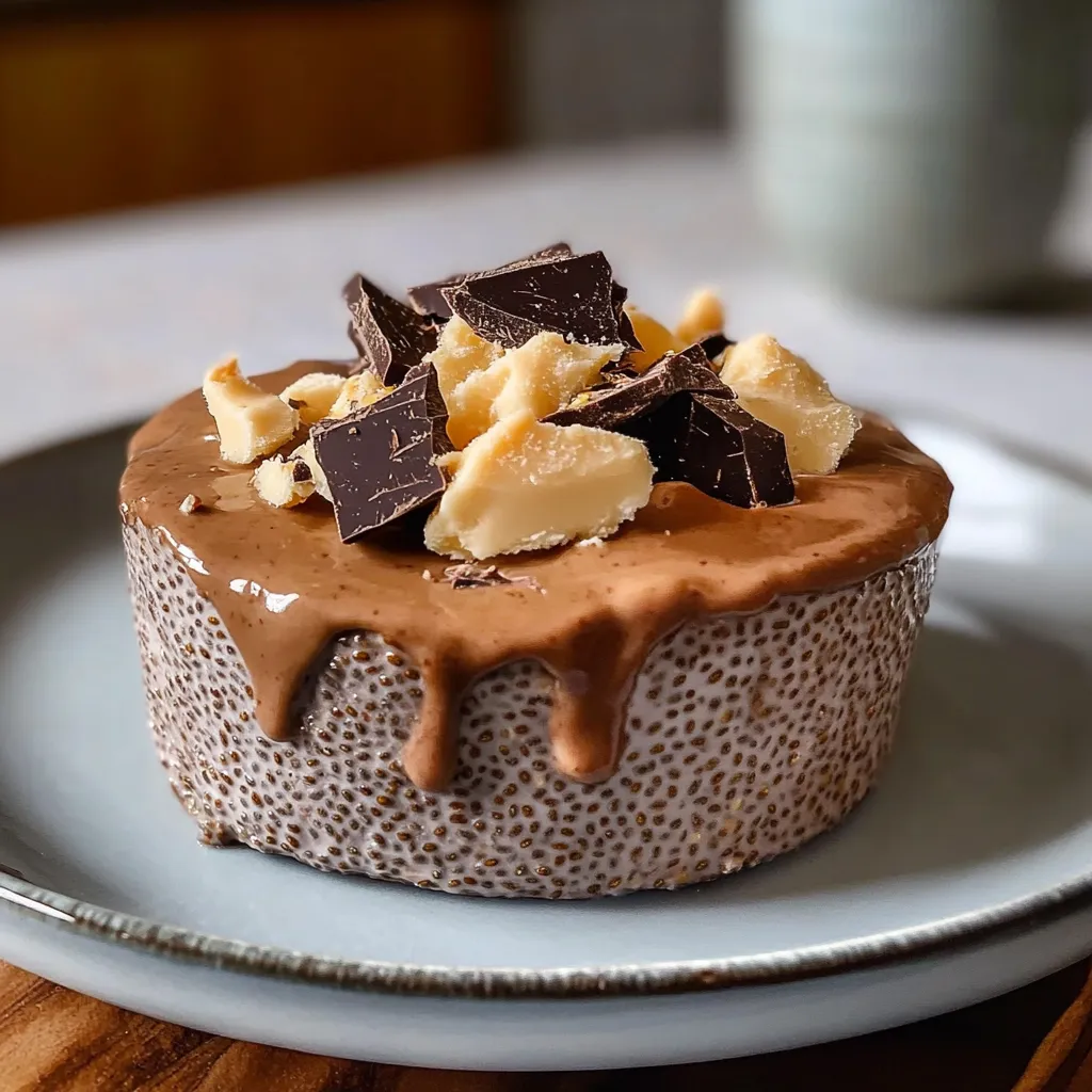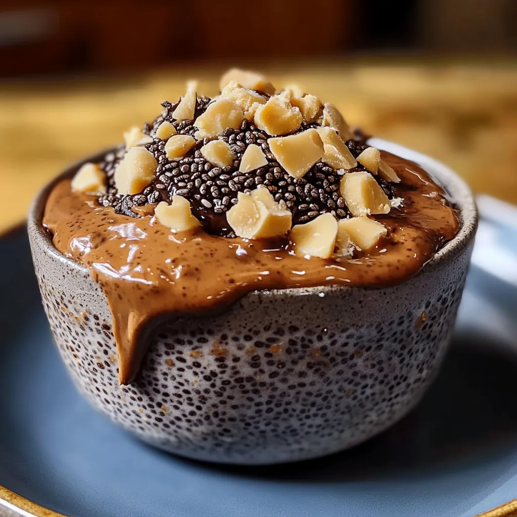 - Mix the Base: In a blender, combine the almond milk, chia seeds, cocoa powder, peanut butter, maple syrup, vanilla extract, and a pinch of salt.