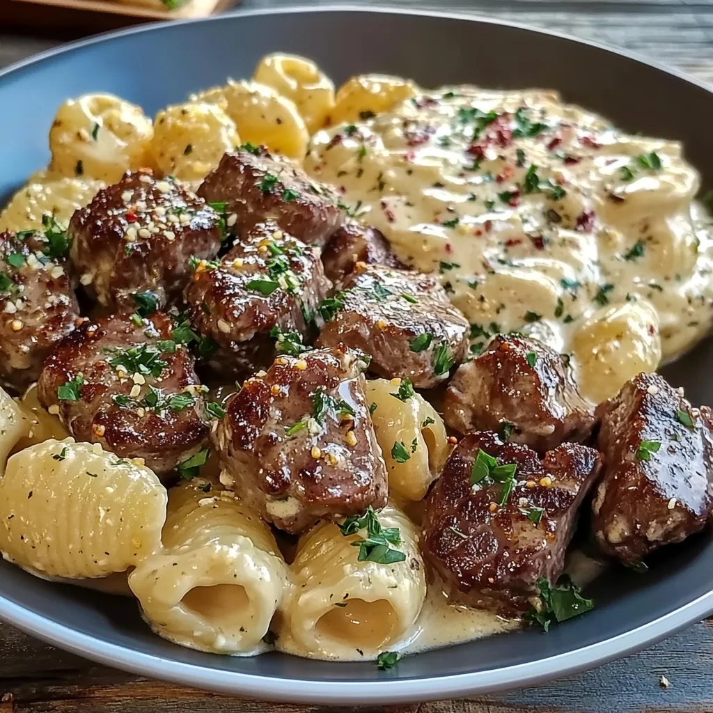- Comfort Food Galore: A rich combination of savory steak and buttery garlic paired with creamy pasta.