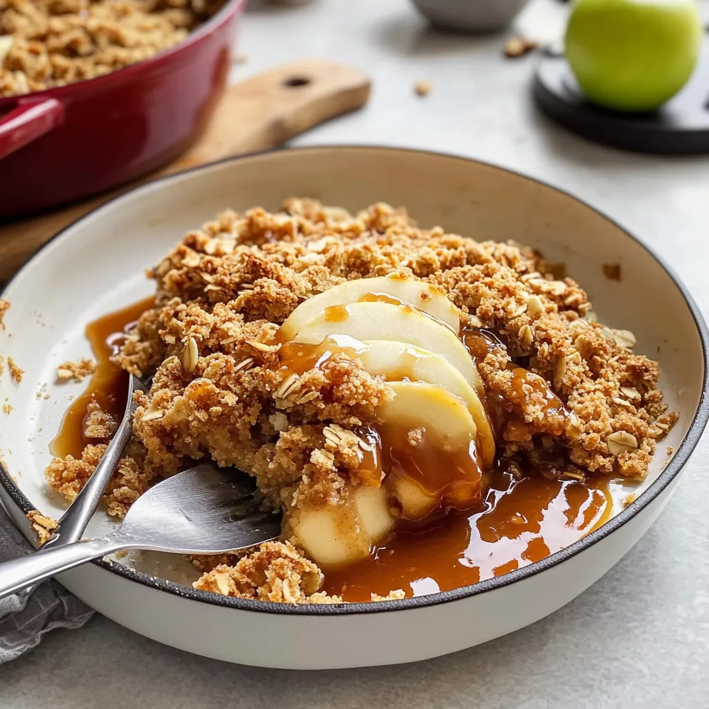 A delicious homemade apple crisp recipe enhanced with salted caramel, perfect for evoking nostalgic memories.