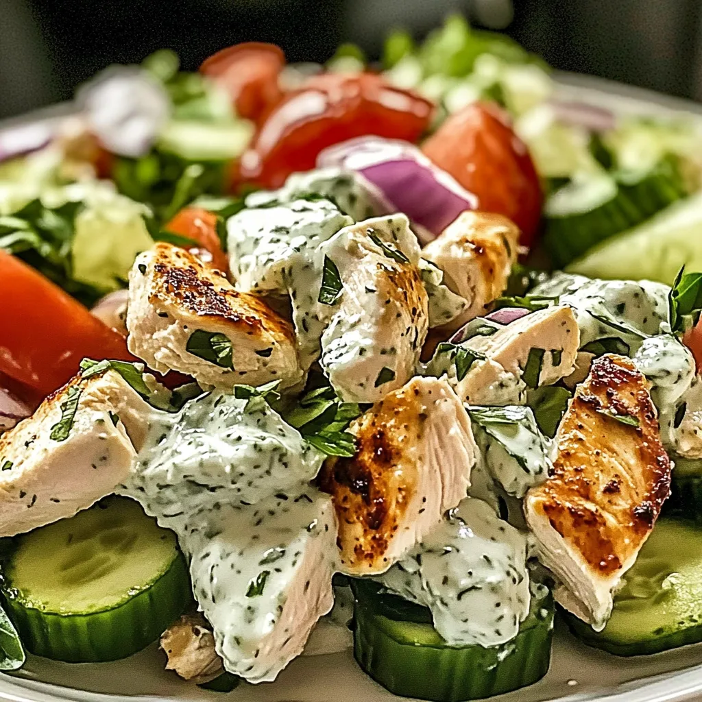 A fresh, flavorful dish that combines tender chicken with vibrant veggies and a creamy tzatziki dressing, packed with protein and health benefits.