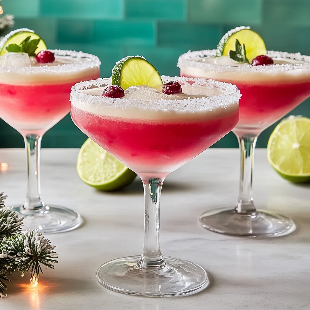 A festive twist on the classic margarita, the Mistletoe Margarita combines rich flavors of cranberry and lime, perfect for holiday gatherings.
