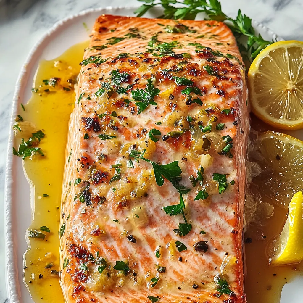 When it’s time to plate up, I love to serve my oven-baked salmon over a bed of fluffy jasmine rice or creamy mashed potatoes to soak up all the delicious juices. You could also pair it with a crisp side salad—think mixed greens with a light vinaigrette to balance that rich flavor. And let’s not forget some crusty garlic bread to dip into any leftover sauce! Finish your meal with a chilled glass of white wine or a cozy herbal tea for a truly delightful dining experience.