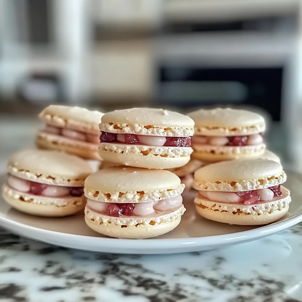 These elegant and delightful macarons infused with rose water and raspberry are the perfect treats for any gathering, combining beauty and flavor in every bite.