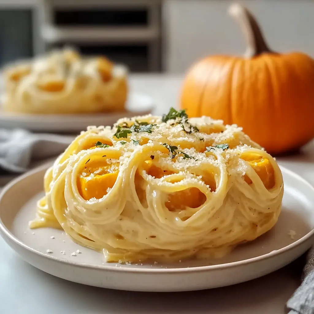 This Pumpkin Alfredo Pasta is versatile for different occasions. For a cozy autumn dinner, pair it with a light arugula salad seasoned with a lemon vinaigrette to balance the creaminess of the dish. Alternatively, it can serve beautifully at Halloween parties, garnished with spiderwebs made from thin slices of black olives. Get creative, and your guests will be impressed!