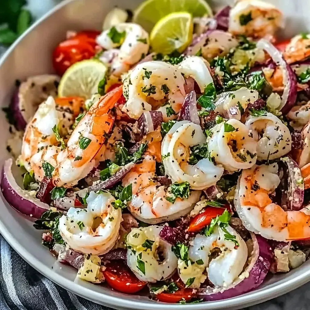 A delightful combination of ocean treasures tossed with crisp veggies and a zesty dressing, perfect for summer gatherings and family feasts.