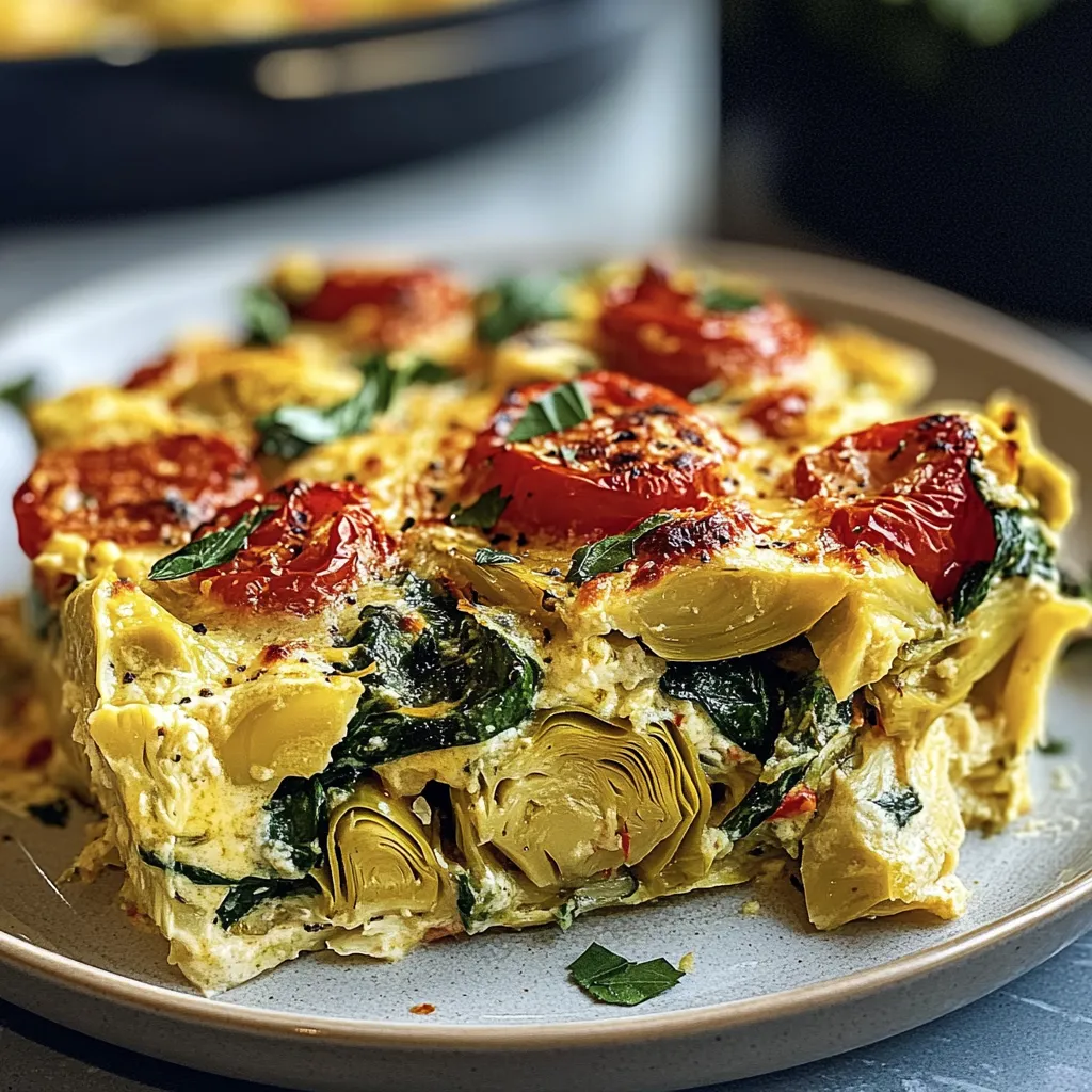 A comforting and hearty Spinach Artichoke Tomato Casserole, perfect for weeknight dinners and gatherings.