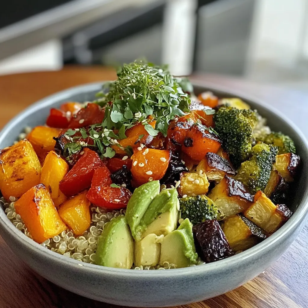 Keywords: quinoa power bowl, roasted vegetables, healthy recipe, easy dinner, meal prep